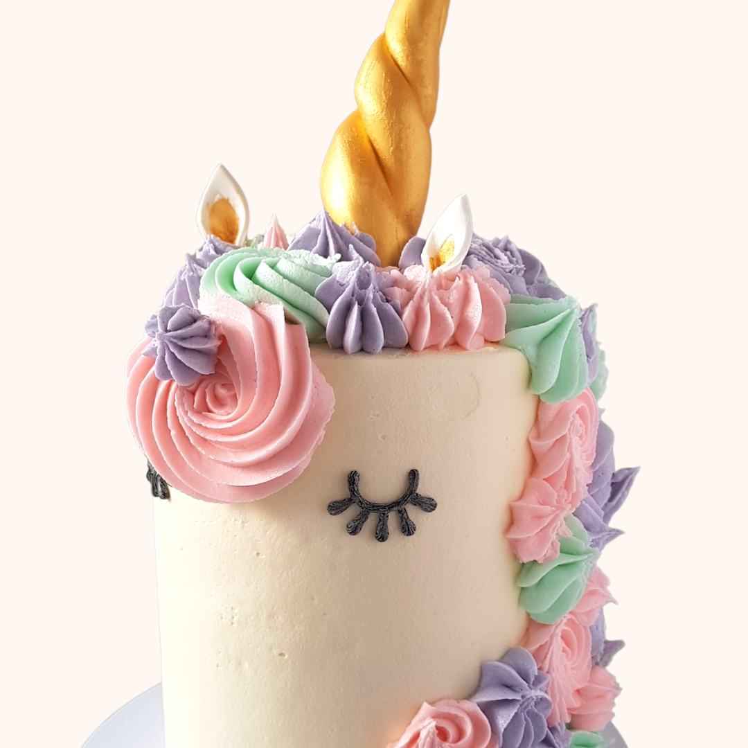 Our Vegan Blissed Unicorn Cake is perfect for any occasion! Its delicious icing is used both between the cake layers and on the outside of the cake. The cake is then decorated with a fondant horn and ears, and coloured with edible gold paint for a festive finish.