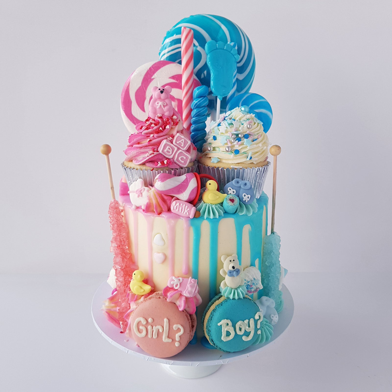 A cake is generally served at baby showers, but you may substitute other treats (such as cupcakes) if the expectant mother prefers them.