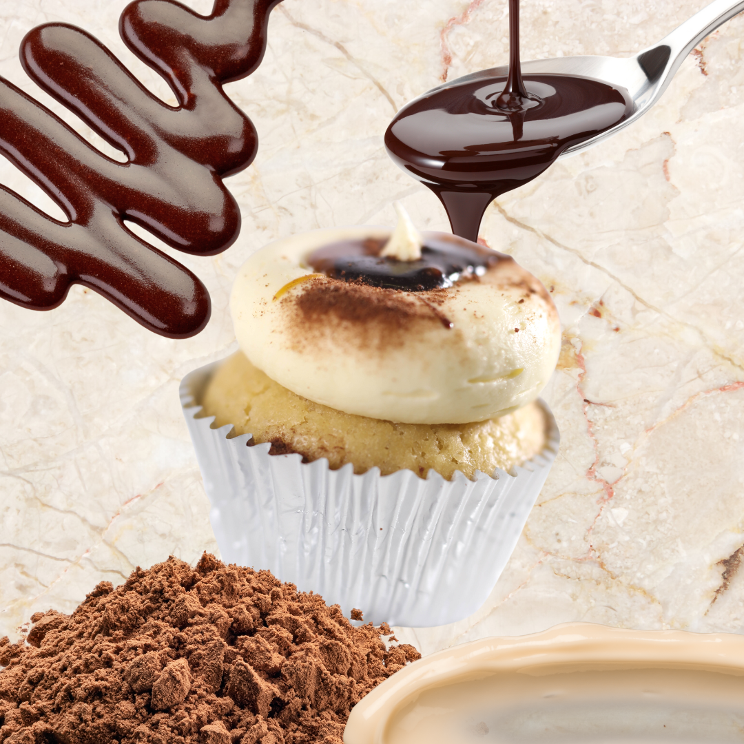 This cupcake is a vanilla-flavoured, moist cake topped with vanilla frosting. Additionally, it is garnished with drizzled caramel and a dusting of chocolate. This is the perfect option if you're looking for a gluten-free, vegan treat–our vegan dessert shop offers this type of cupcake and other variations, such as almond or coconut-flavoured cupcakes.