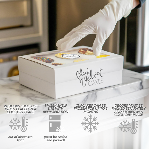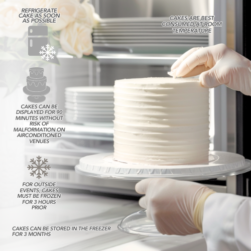 In the instance the cake can be refrigerated or will be consumed in a cool dry indoor space, use the following guide:
